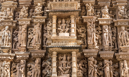This Temple dedicated the Jain Saint Adhinath. This Temple exterior wall also features Hindu Deities. The Exterior Wall of the Temple of three bands of sculptures featuring graceful Woman. The Three Hindu Temples of the group are the Barhma, containing a four-faced lingam, the Vamana, which is adomed on its outer walls with carving apsaras in veriety of sensous attides and the Javari. Another sculpture with similar iconography also features a yaksha, a yakshini, and a bull with a dharmachakra.